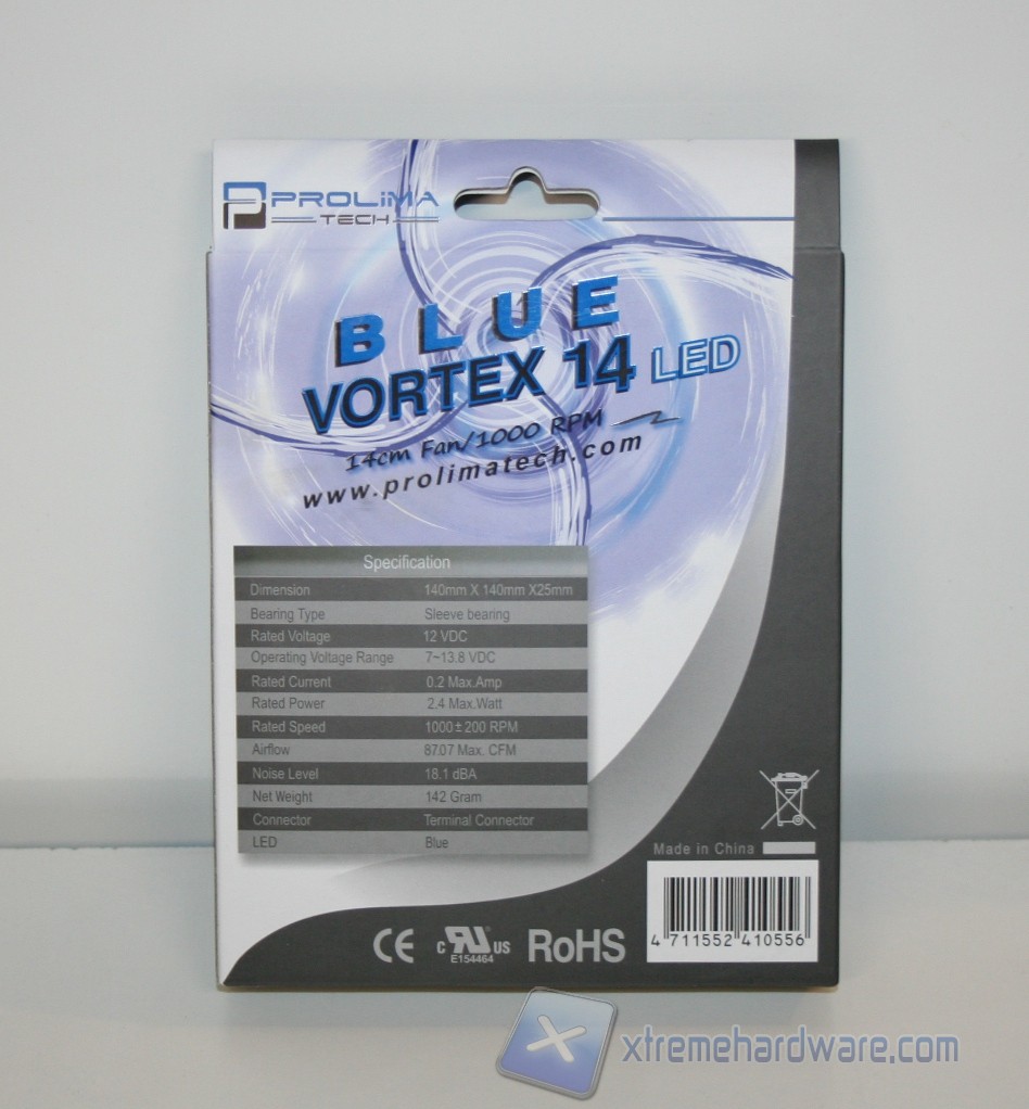 Abbiamo già recensito la nuova serie Prolimatech, che consiste in tre ventole da 120mm e ben 4 da 140mm, entrambe sempre con 25mm di spessore; la linea produttiva “Vortex” è interessante in quanto è finalizzata ad un pubblico molto esigente in termini prestazionali, non a caso il valore di targa della serie da 120mm è ben 72.67CFM, al massimo del regime di rotazione. Per quanto riguarda le 140mm invece il valore sale ad 87CFM.
