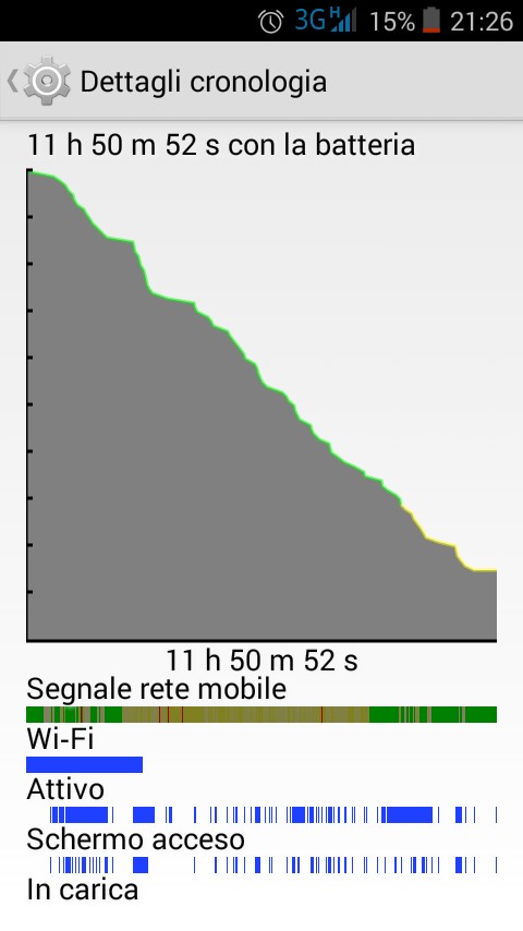Per quanto riguarda l'autonomia siamo rimasti davvero molto soddisfatti. La batteria presenta una capacità di soli 1800mAh che però uniti ad un display di dimensioni contenute ed un hardware poco esigente in termini energetici permettono di raggiungere valori ragguardevoli in termini di ore di schermo acceso; con un utilizzo anche intensivo nella stragrande maggioranza dei casi non avrete alcun problema ad arrivare a sera, se poi non sfruttate moltissimo lo smartphone potrete, in alcuni casi, anche raggiungere i due giorni di utilizzo.